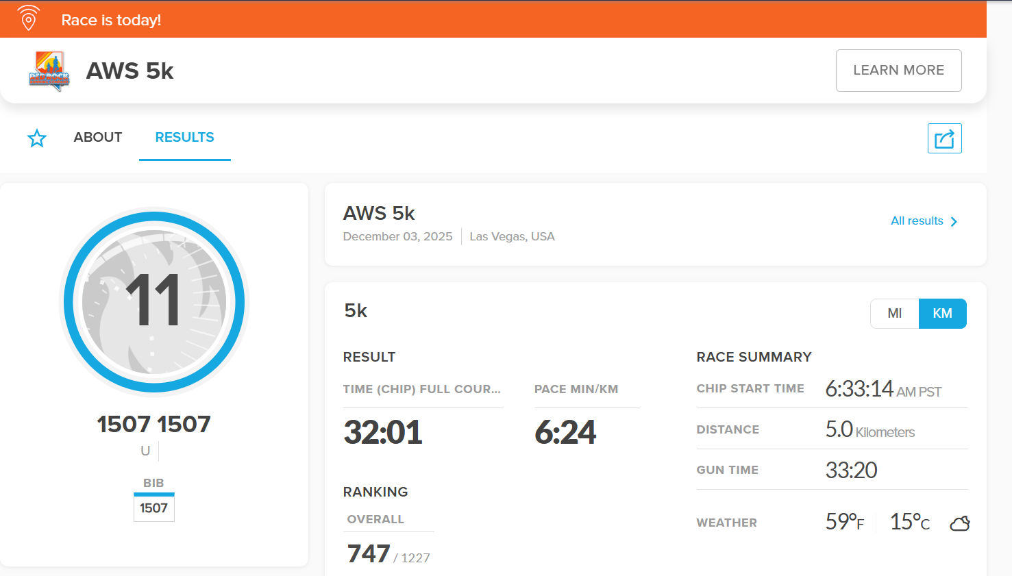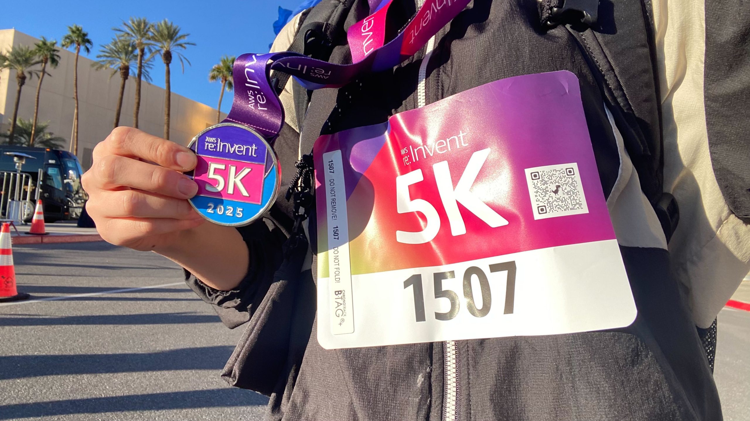 レースは、日頃から走り慣れている人から、今日が記念参加という人まで本当に幅広く、ランニングウェアの人もいれば、AWSパーカーで走っている人もいたりして、この自由さもre:Inventらしい空気感でした。