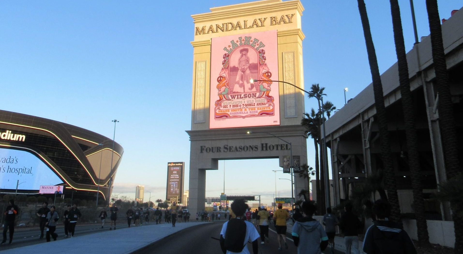私は「完走できればOK」くらいの軽い気持ちで参加したのですが、いざ走り出してみると想像以上に距離が長く、正直なところ結構しんどく感じました。しかし、日の出前の薄暗い時間帯のスタートで、走るうちに少しずつ空の色が変わっていき、ラスベガスの街がゆっくり目を覚ましていくような景色が広がっていくのを見ていると、その風景が本当に綺麗で、パワーをもらうことができました。おかげで、キツさはありつつも、最後まで楽しみながら走ることができました!