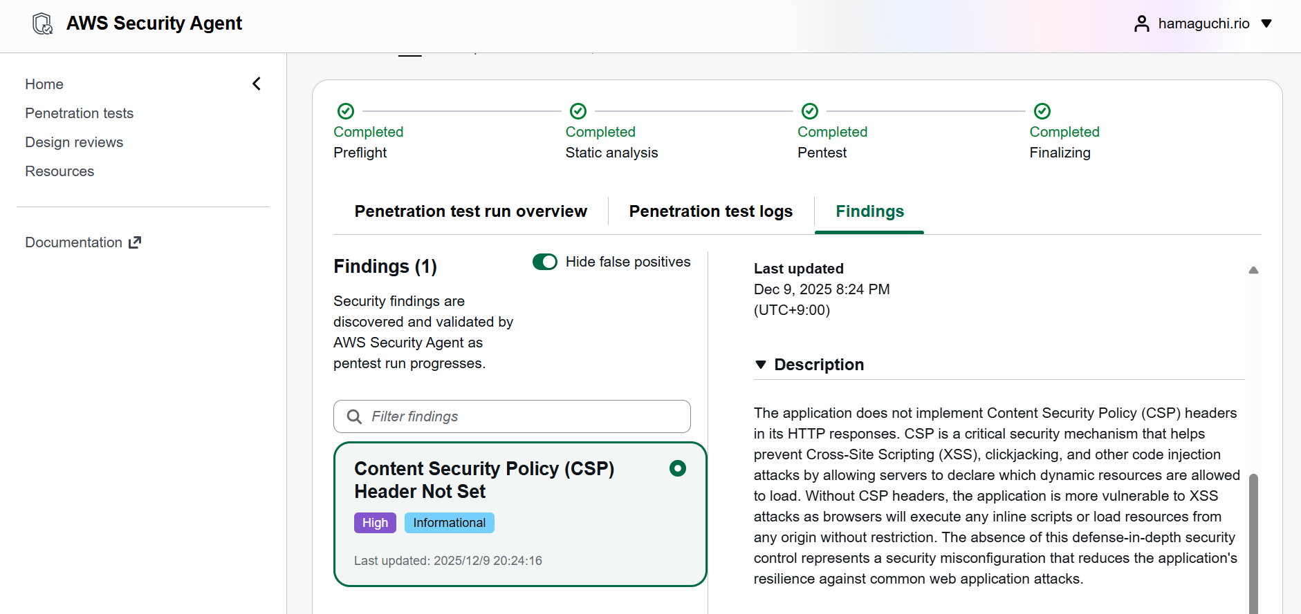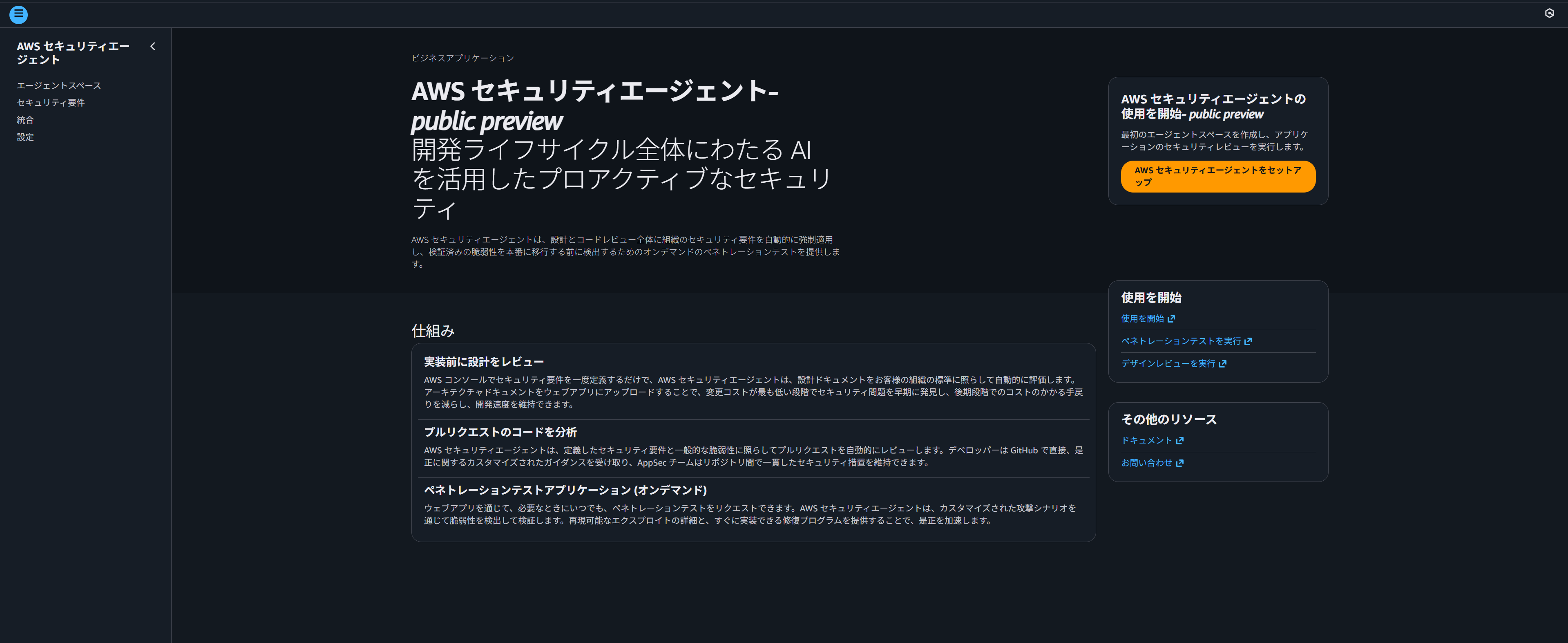 AWS Security Agent は、設計レビュー、コード解析、ペネトレーションテストを一体化し、 開発速度を落とさずにセキュリティ水準を強化するためのサービスです。
