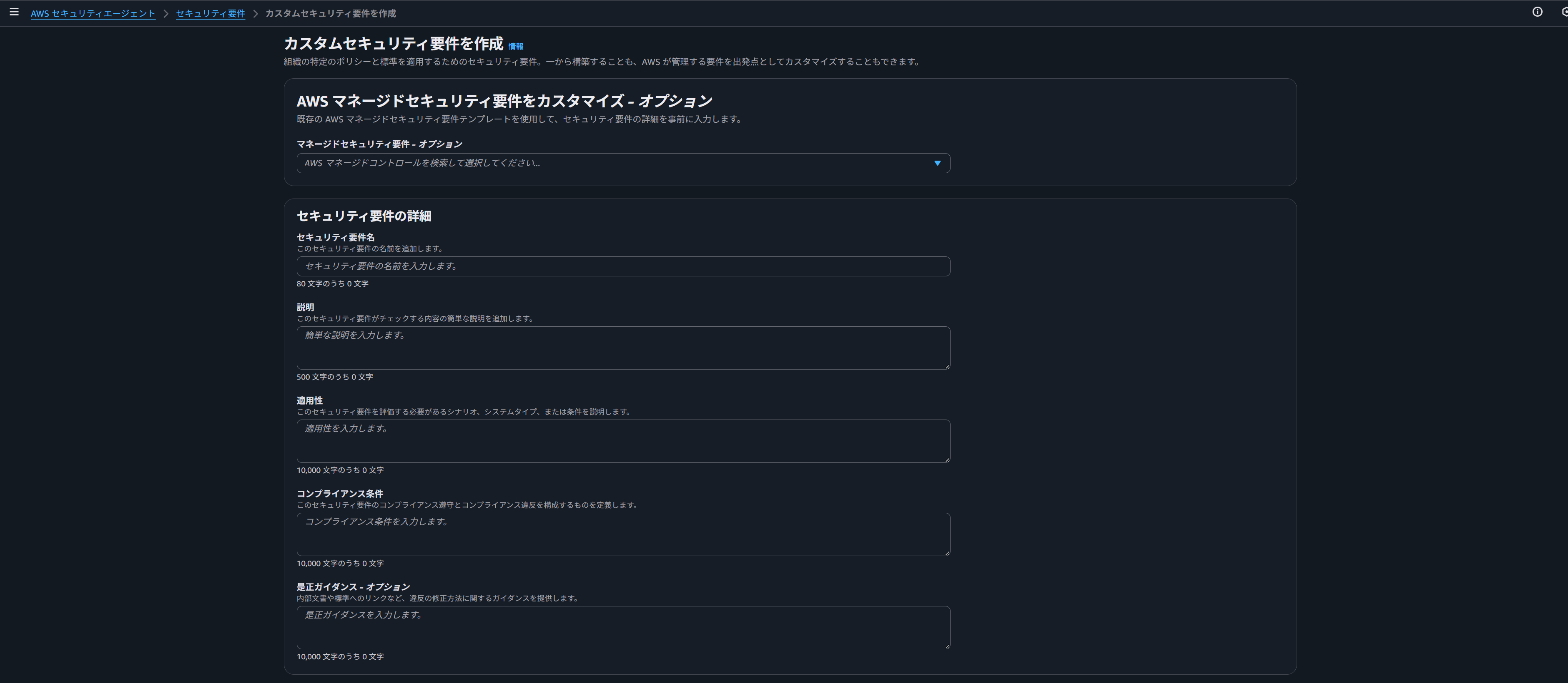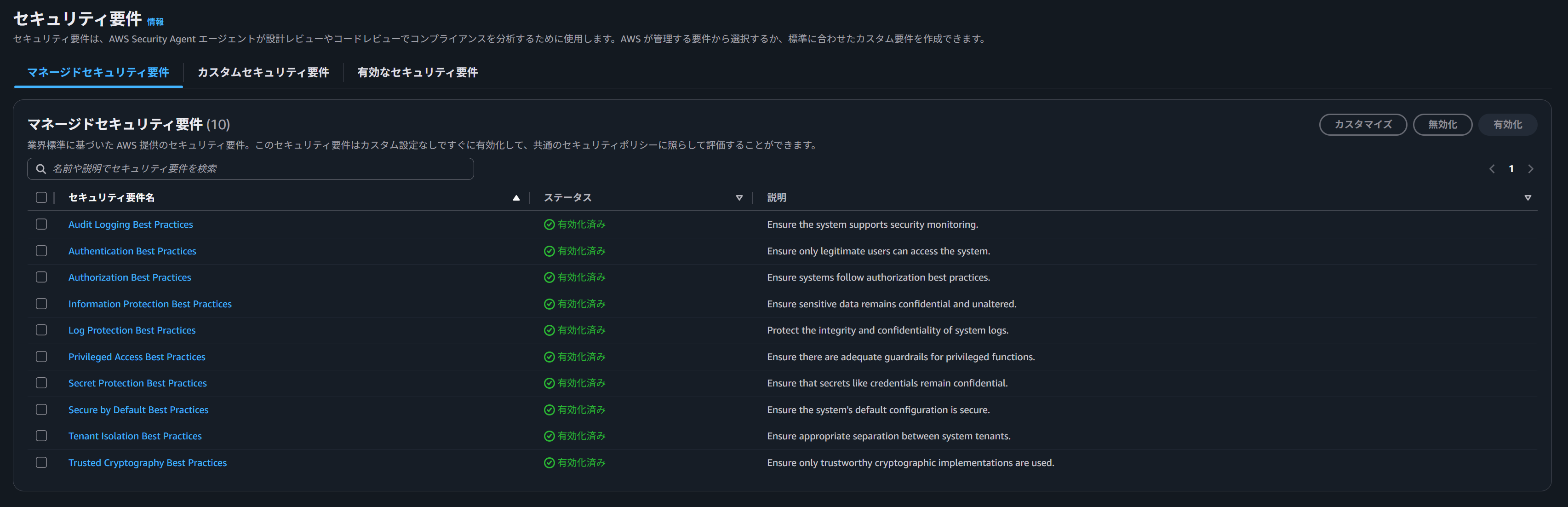 マネージドセキュリティ要件として予め10個の要件が用意されているようです。