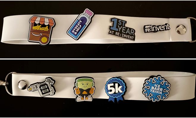 • そのピンをストラップの穴にはめて、自分だけの re:Invent 記録が完成する