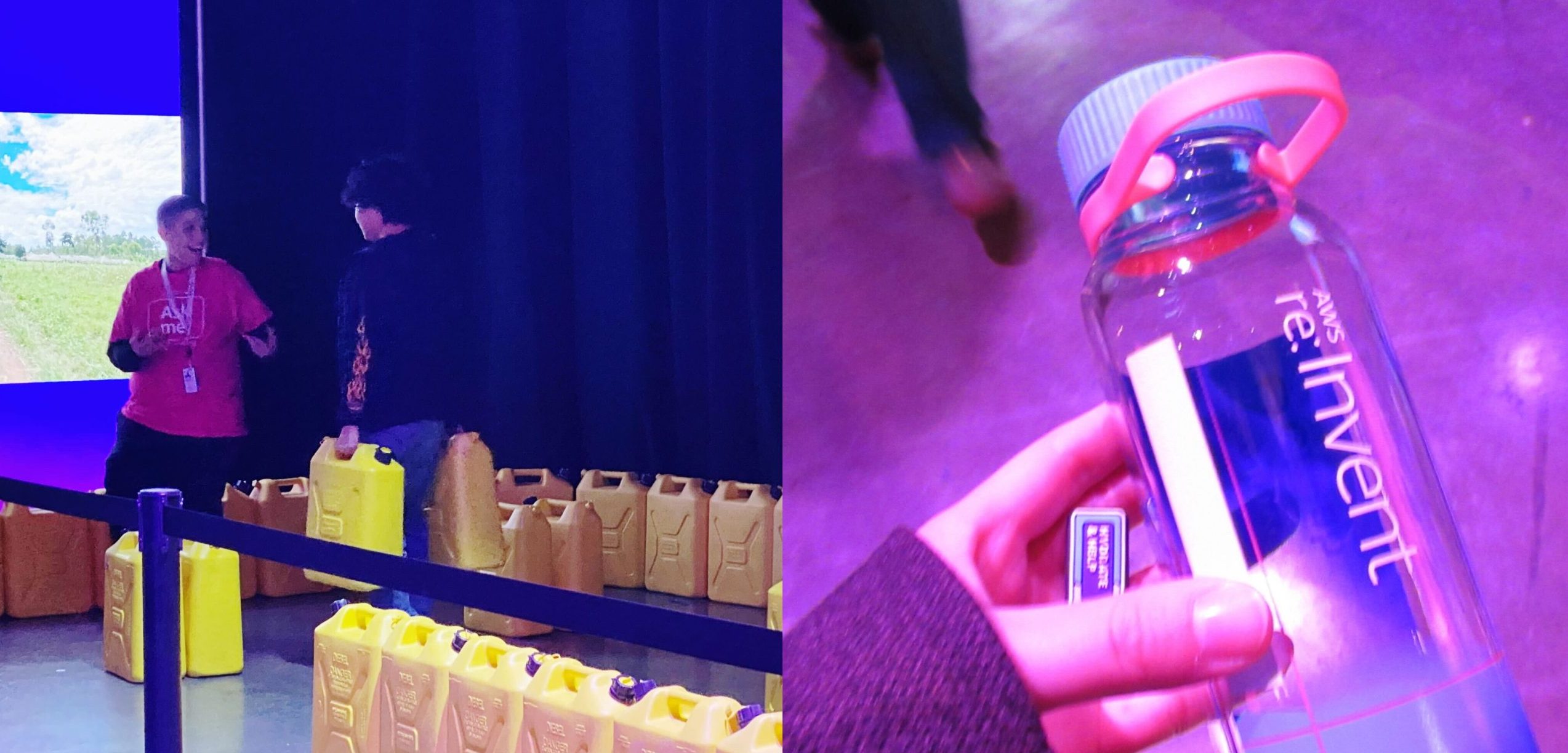 Hydrate & Help は、re:Invent 期間中の水分補給を通じて、寄付につながるチャリティ型イベント。水を汲んだり参加手続きをすることで、世界の安全な水供給プロジェクトへの支援につながります。