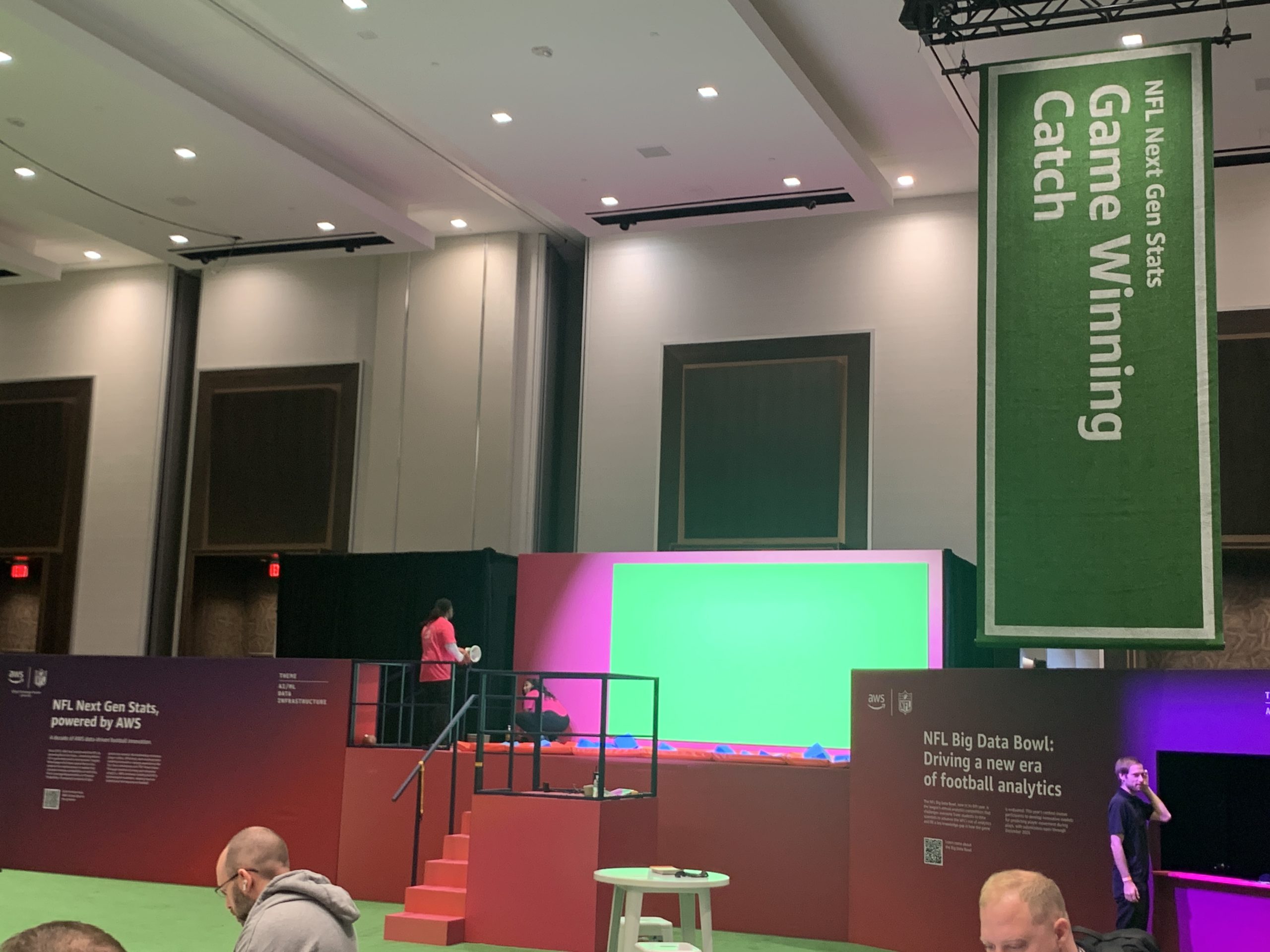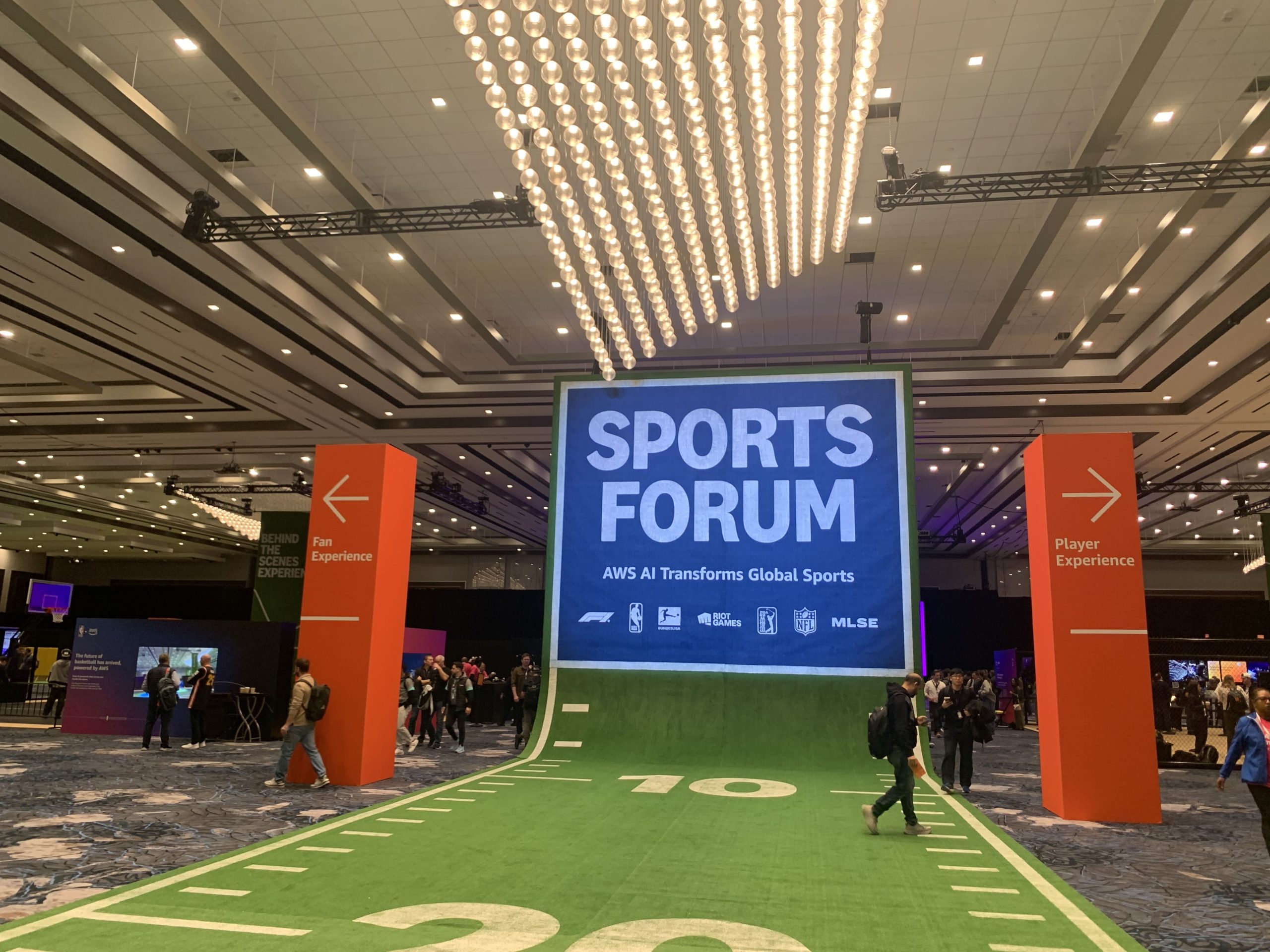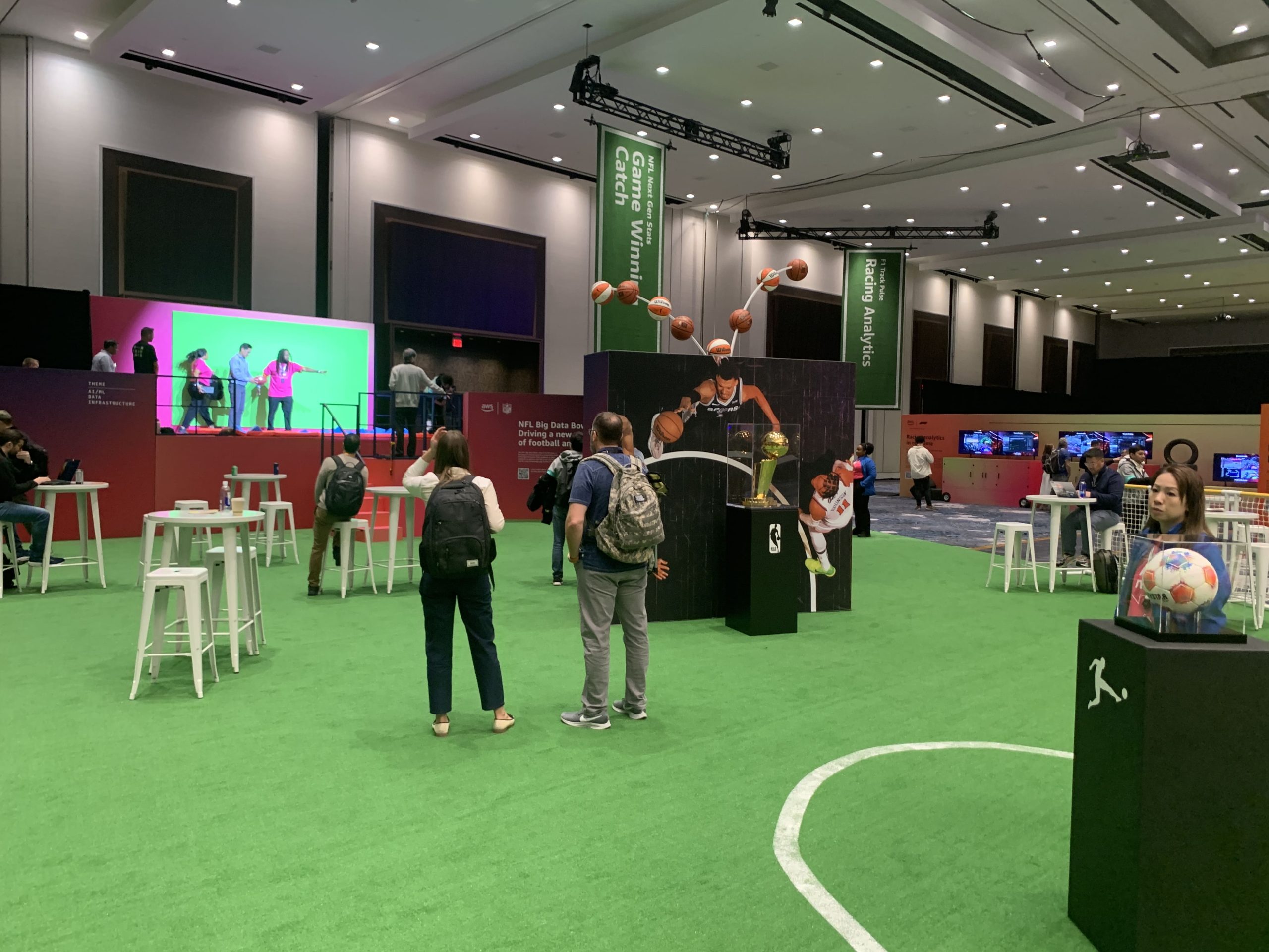会場のひとつである Caesars Forum で行われていた Sports Forum。スポーツの分野でも、リアルタイム分析やデータ映像の保存など、AWS が活用されています。この Sports Forum では、様々な活用事例やスポーツの体験を行うことができました。