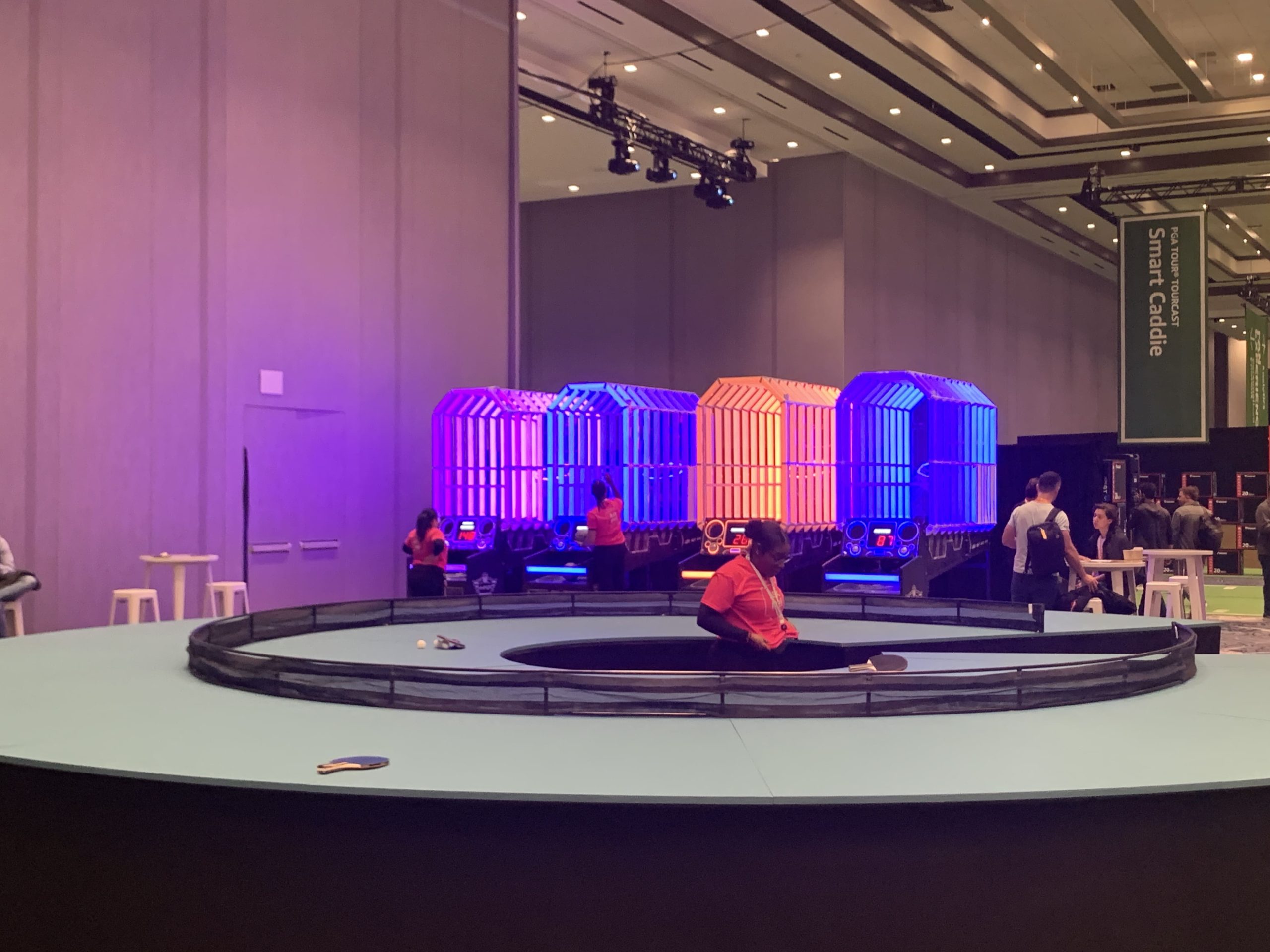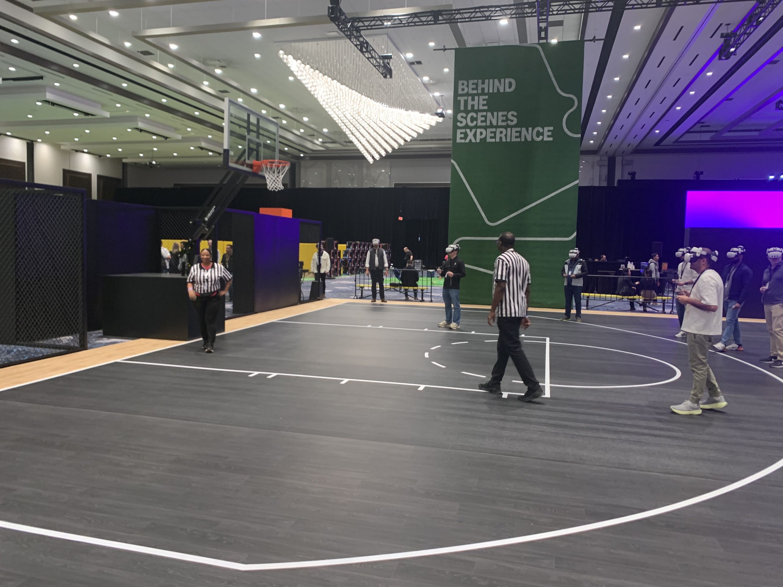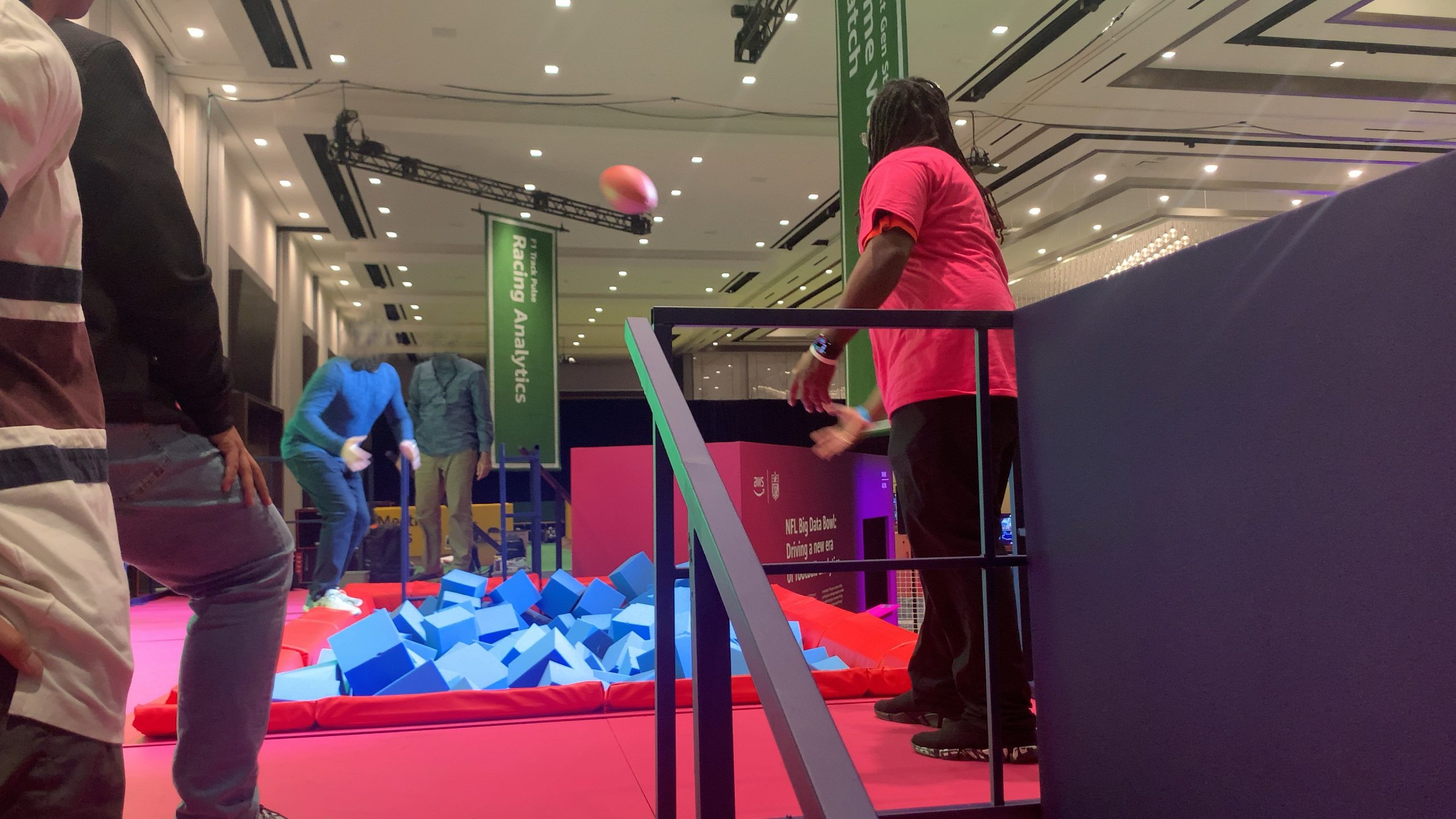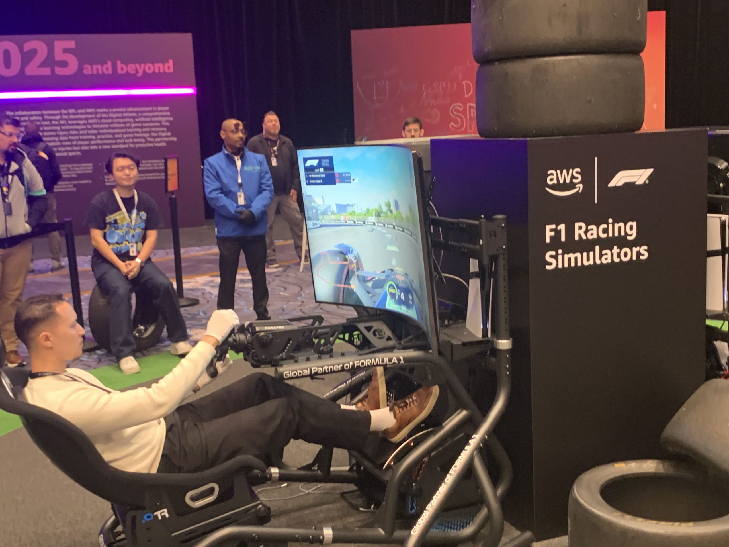 会場のひとつである Caesars Forum で行われていた Sports Forum。スポーツの分野でも、リアルタイム分析やデータ映像の保存など、AWS が活用されています。この Sports Forum では、様々な活用事例やスポーツの体験を行うことができました。