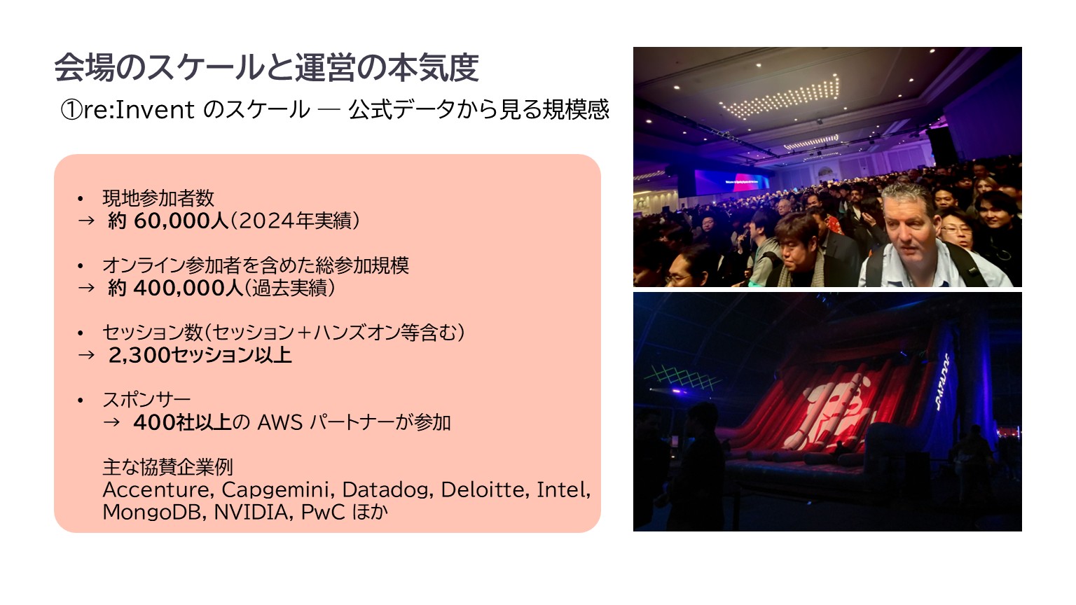 ☞「AWS re:Inventについての詳しい詳細」や「会場の雰囲気」について詳しく見る