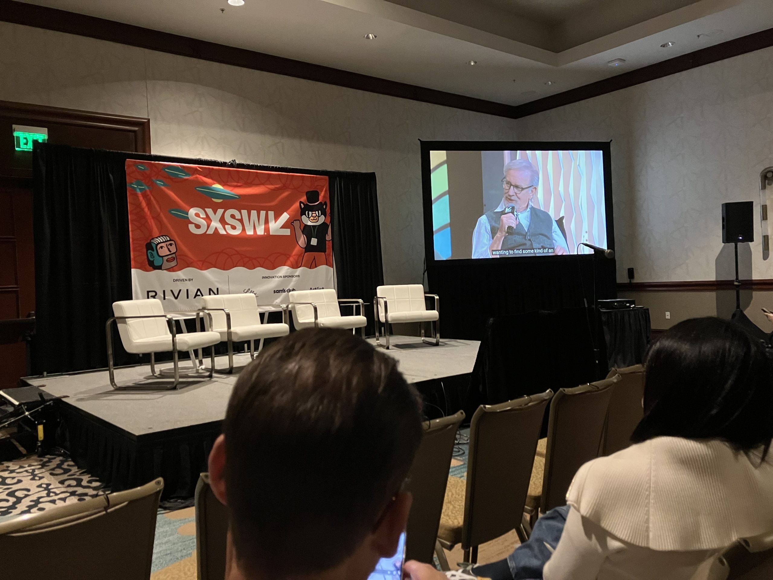 話はSXSW2026に戻りますが、今年の目玉としてスティーブン・スピルバーグ監督がキーノートに登場し、多くの聴衆で溢れていました。事前予約はすぐに満席となり、私はメイン会場に入れずサテライト会場で大画面を見ました。スピルバーグ監督も対談の中でAIに触れていました。