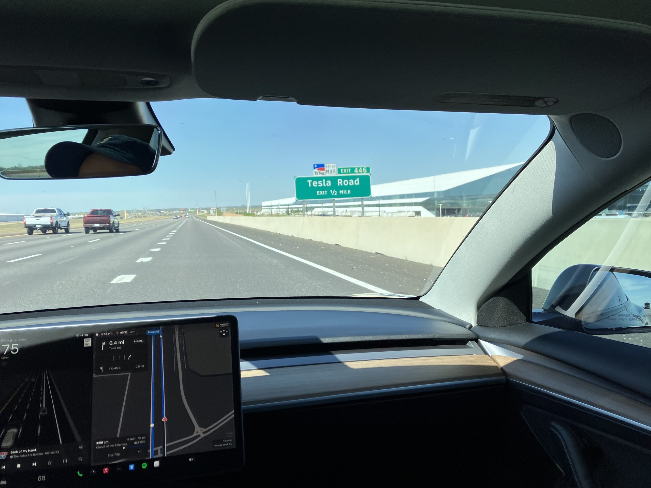 ただ、まだ走行できるルートが限られているようで、最短経路を走らずに遠回りすることがありました。またスマホアプリで配車をリクエストすると、どこでも乗車可能なわけではなく、近くの乗車位置まで徒歩で移動するように指示されることもありました。これらは学習データ(走行データ)の有無に拠るのかもしれません。オースチンというコンパクトな街は、学習データの網羅度を高めるのにちょうど良く、FSD(Full Self-Driving)の実証評価に向いているのかもしれません。