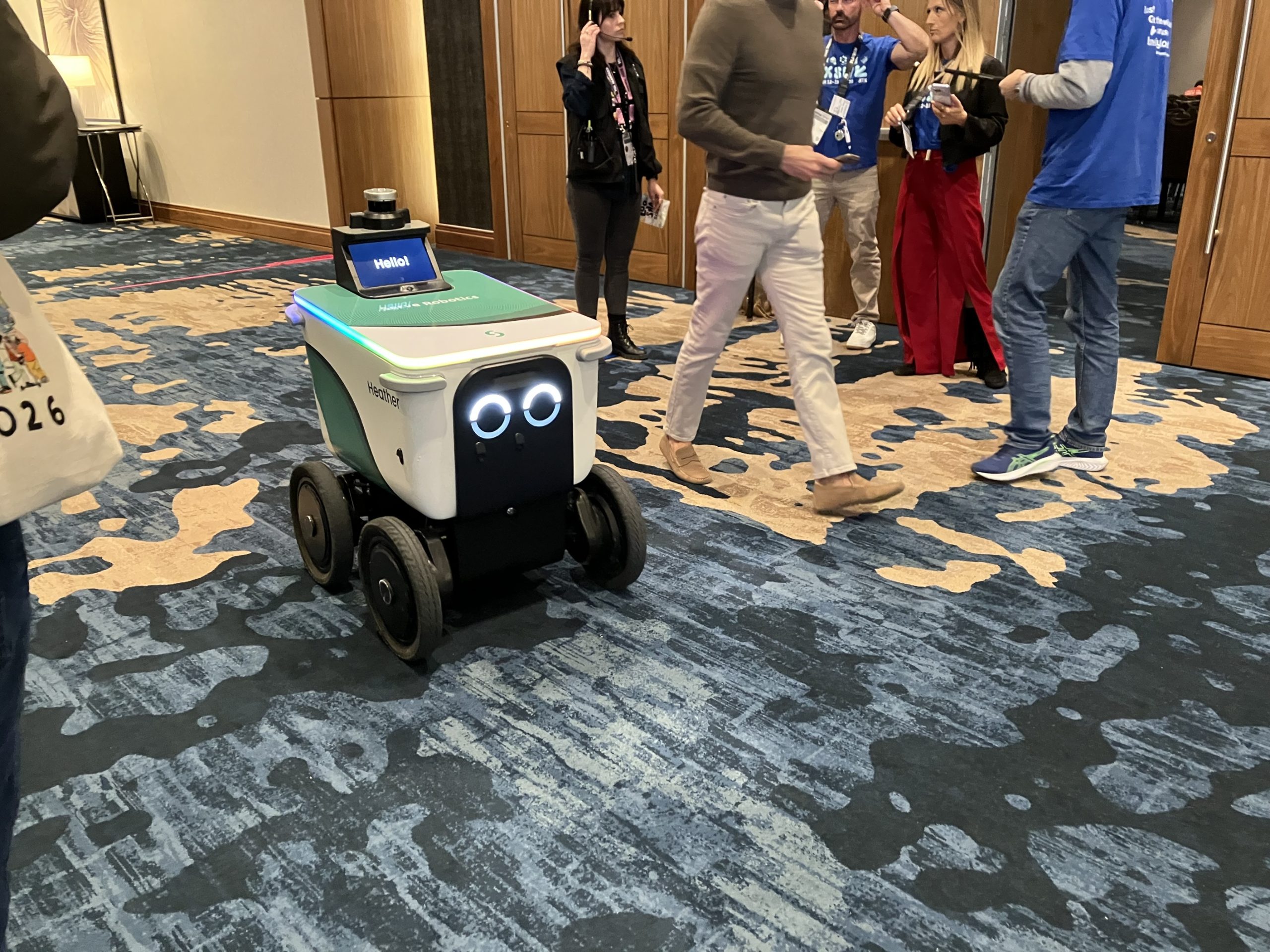 路上や建屋の中で、小荷物(主にランチボックスなどでしょうか)を運ぶ自律走行ロボットも見かけました。路上では、ちゃんと信号待ちをしていました。日本で見かけるものより若干大型で実用的な感じでした。