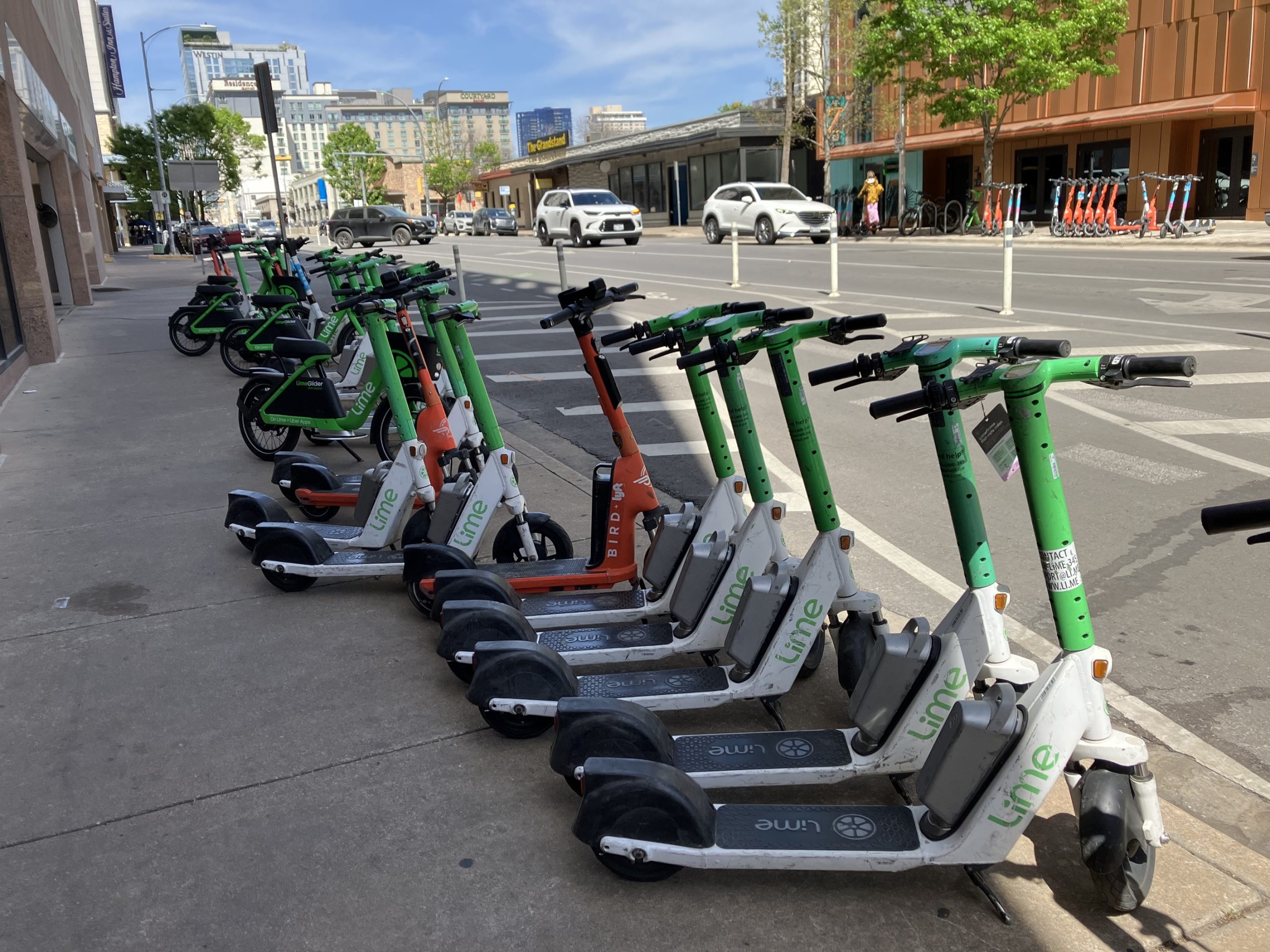 東京でも導入が始まっているLimeの電動キックボードや電動自転車が多量に配備されており、人々が日常的に利用していました。オースチンではLime専用アプリではなくUberアプリから利用するようになっており、課金も含めて他のUberサービスとのワンストップを実現し利用者の参入障壁を下げていました。また、Lime以外にも2つの事業者が参入していました。なお、駐輪場(ポート)が定められておらず、目的地に着いたらその場に乗り捨てが可能でした。無秩序になりかねないですが、利用者の利便性を第一に割り切った運用になっていました。